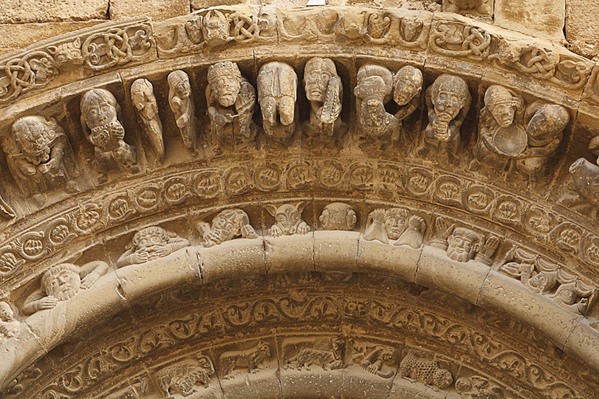 Detalle de la portada meridional de Santa María de Uncastillo.